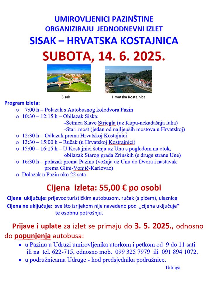Jednodnevni izlet Sisak – Hrvatska Kostajnica